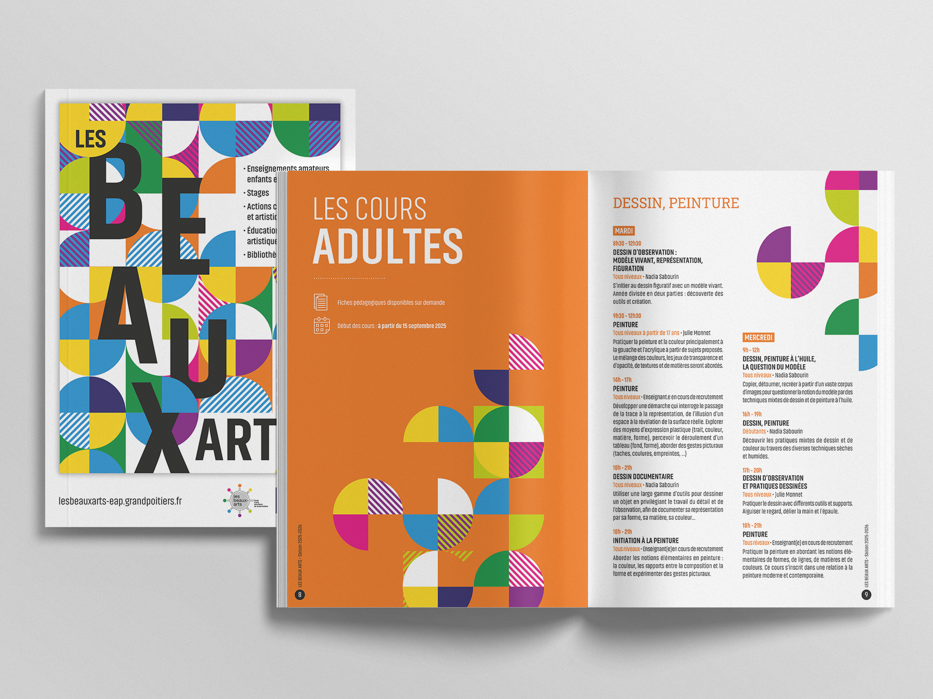 Mission : conception - réalisation du programme et de la charte graphique des beaux arts de Grand Poitiers pour l'année 2025-2026.